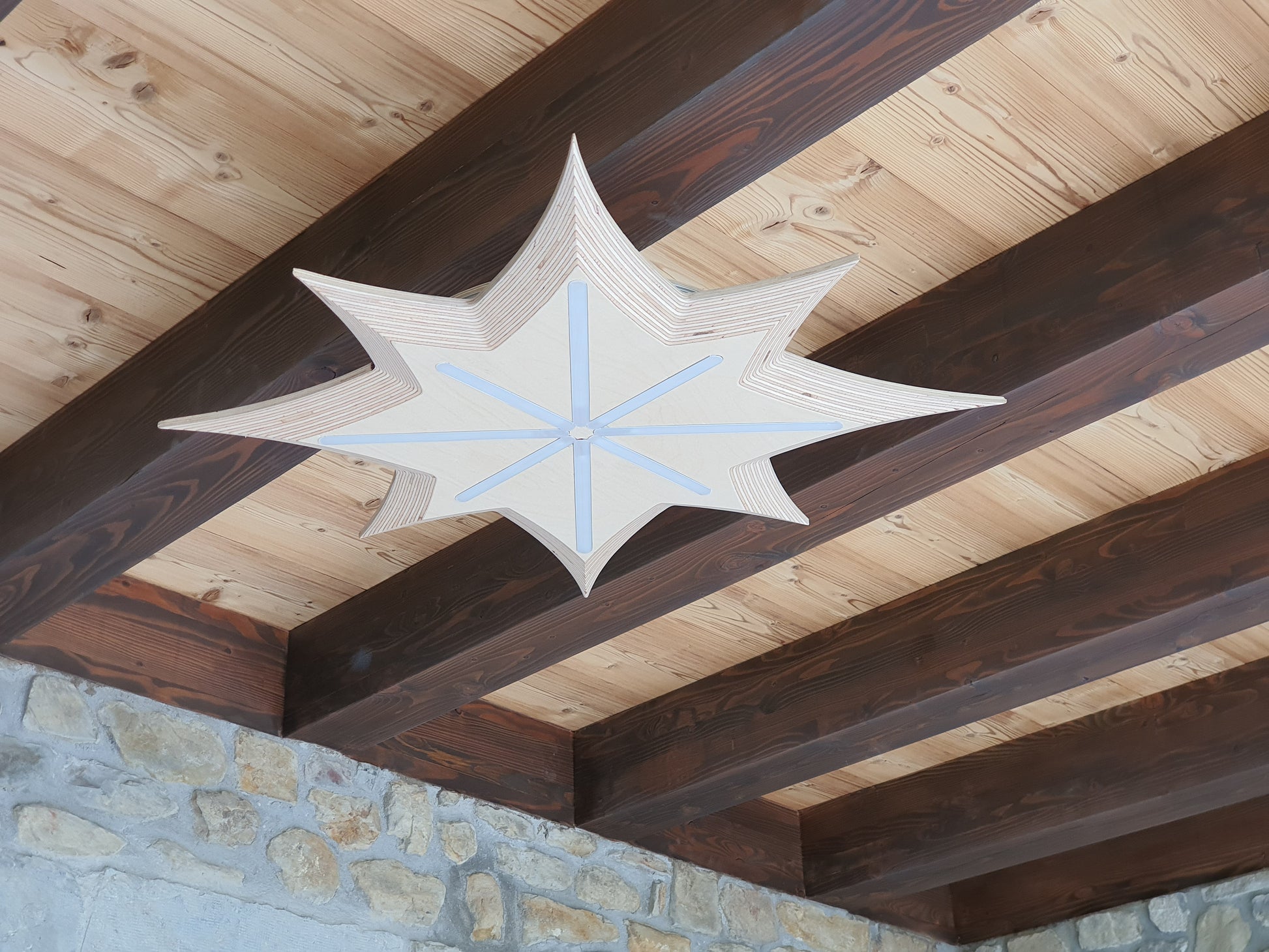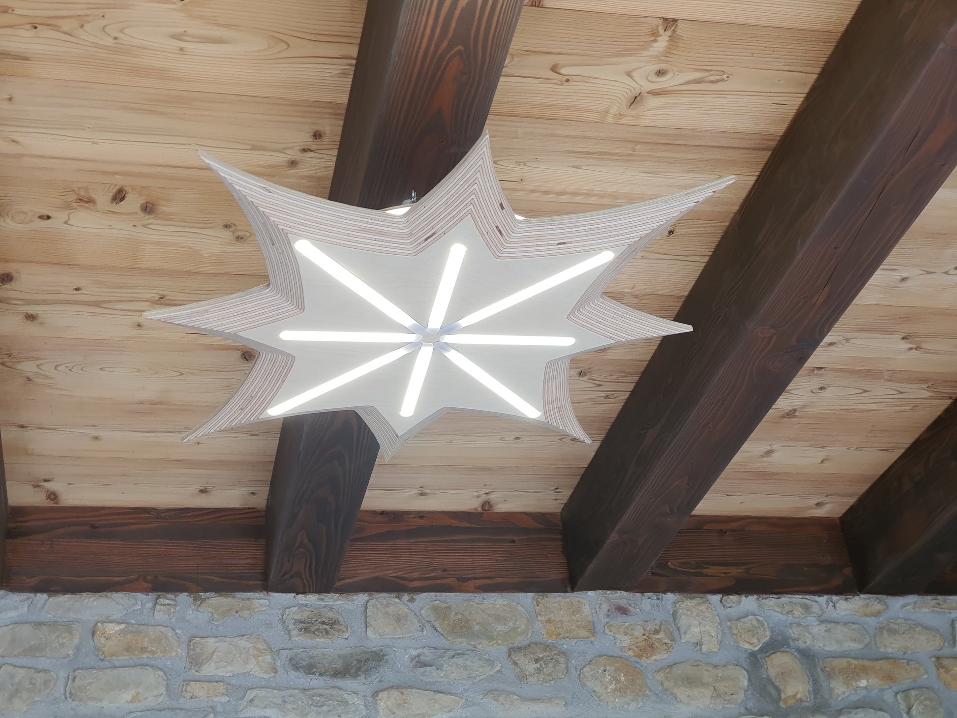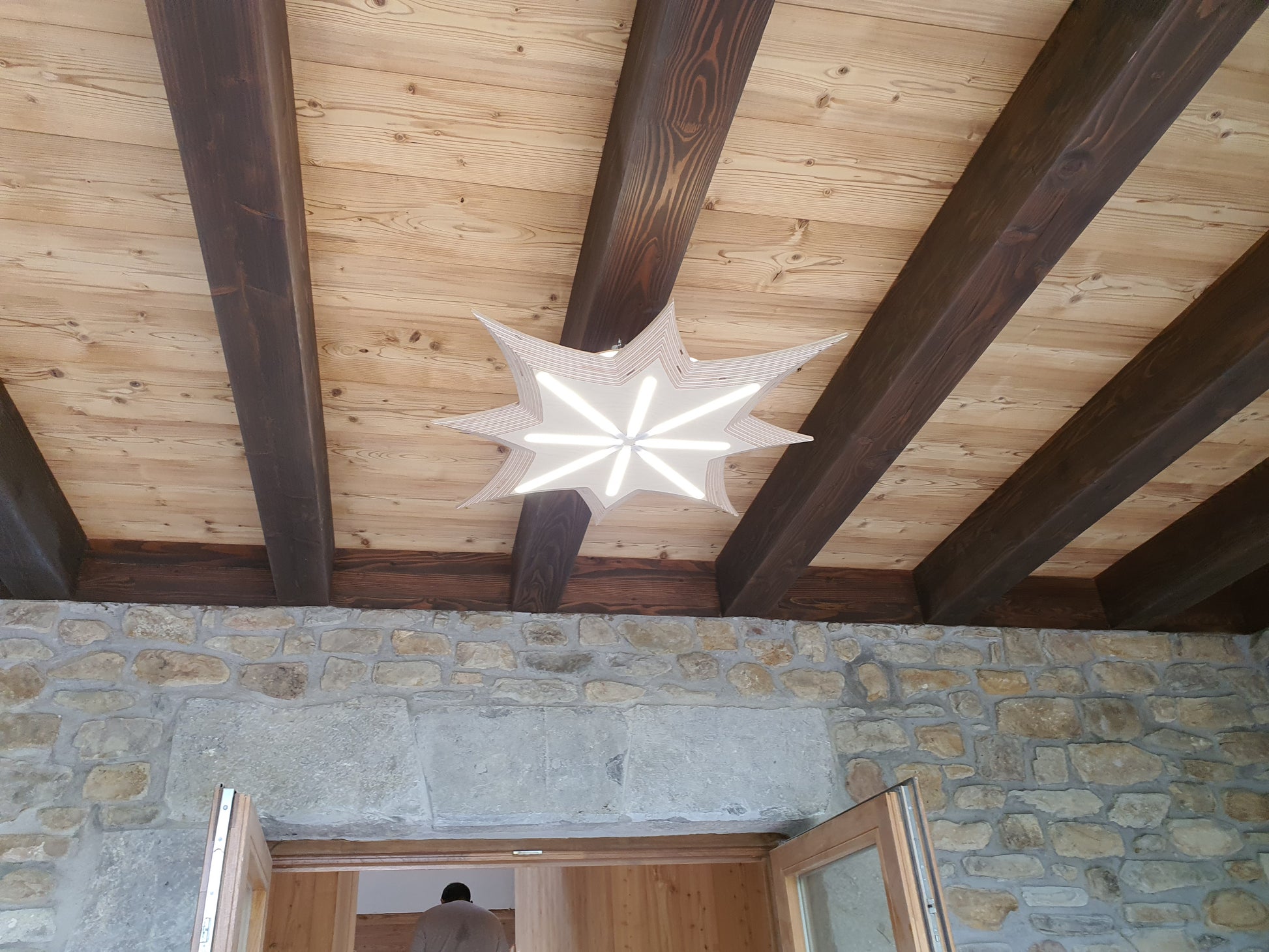 La lampe Eguzkilore, inspirée du tournesol qui orne les entrées des fermes du Pays Basque, symbolise l'accueil et la protection de la maison. Placé à l'entrée, son design distinctif et sa lumière chaleureuse non seulement illuminent mais rendent également hommage à une tradition culturelle, s'intégrant parfaitement dans l'environnement de la ferme.