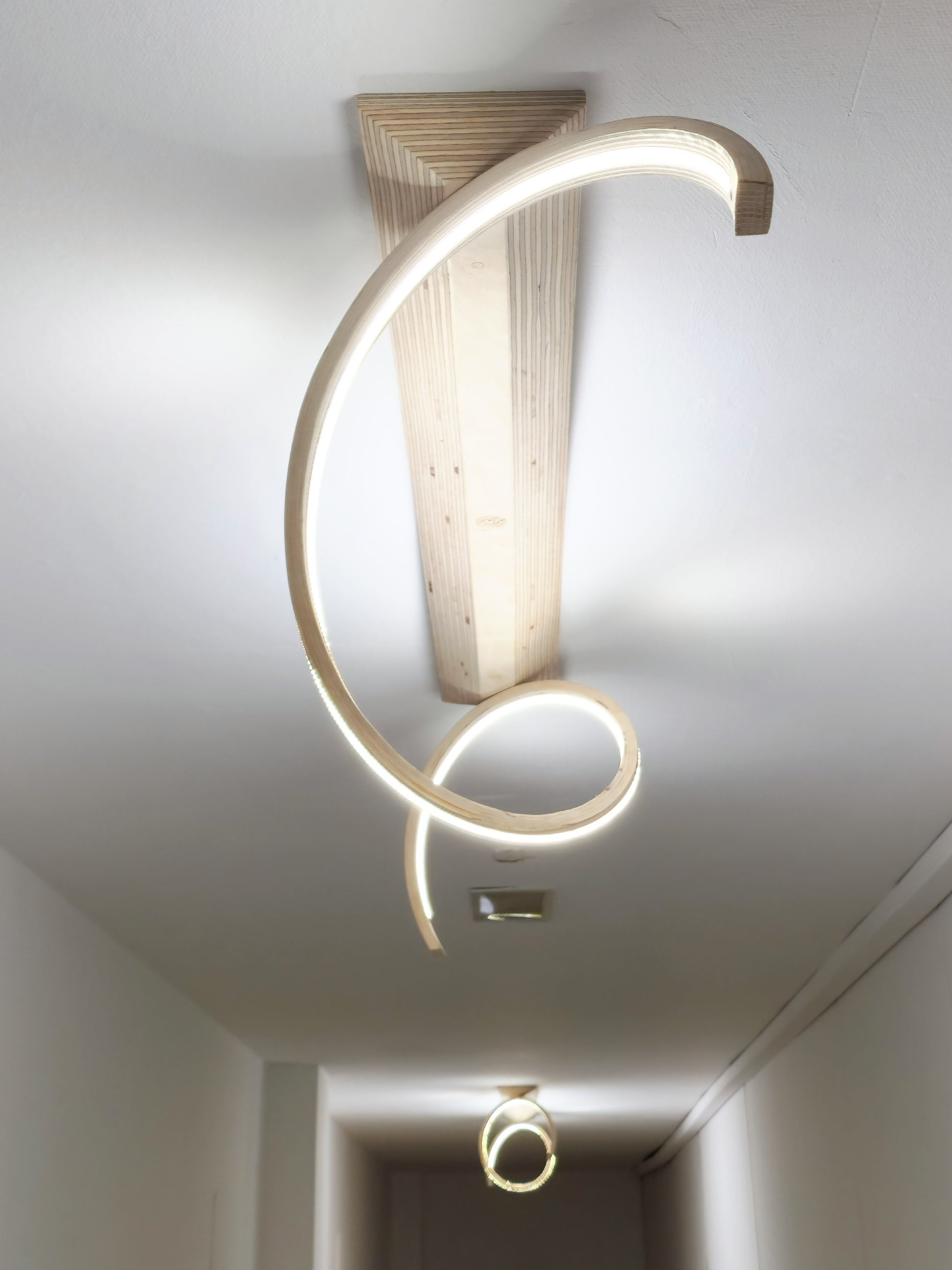 La lámpara Espiraled combina diseño moderno y elegancia natural en una pieza que transforma cualquier espacio. Con una estructura de madera de alta calidad, la lámpara presenta una tira LED de alta eficiencia energética que sigue una curva suave y continua, generando una iluminación envolvente y sofisticada. Ideal para oficinas, salas de estar o cualquier ambiente que busque un toque distintivo, esta lámpara destaca por su estética minimalista y contemporánea, brindando una luz cálida que resalta la naturalidad de la madera y la fluidez de su diseño. Espiraled es más que una lámpara; es una obra de arte funcional, pensada para inspirar y aportar calidez a su entorno.