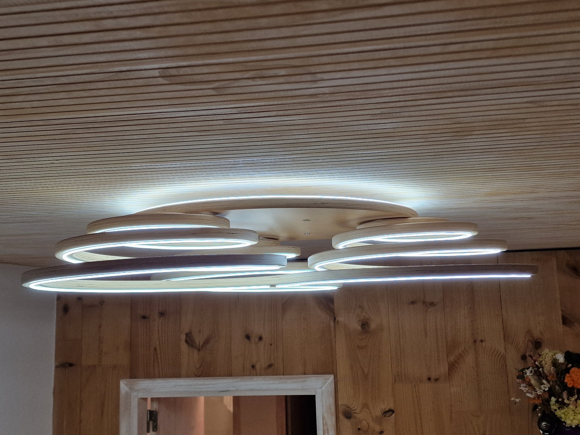 La lámpara Triskel ejemplifica el concepto 'Gravityform' en su forma más pura, permitiendo que la madera se curve de manera natural bajo su propio peso. Esta deformación controlada crea una estética única y un equilibrio armonioso entre tensión y forma. Fabricada con madera contrachapada de abedul de primera categoría y equipada con LED de gran calidad, la Triskel ofrece una iluminación envolvente y un diseño orgánico que transforma cualquier espacio.