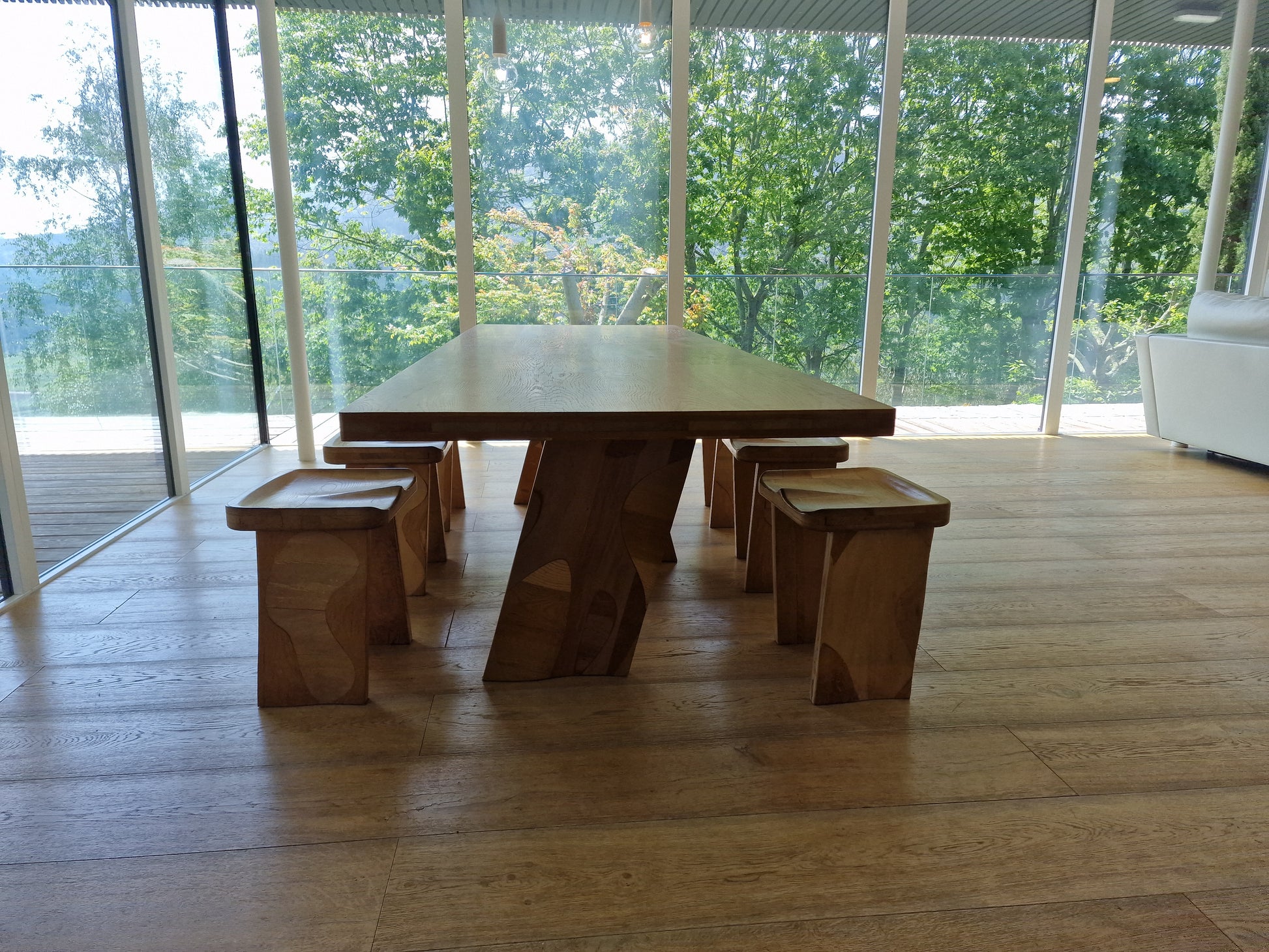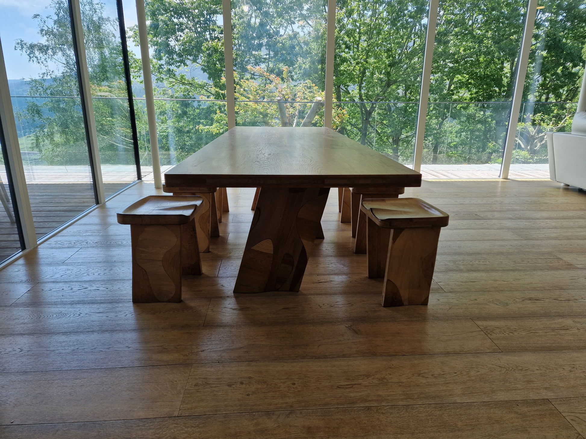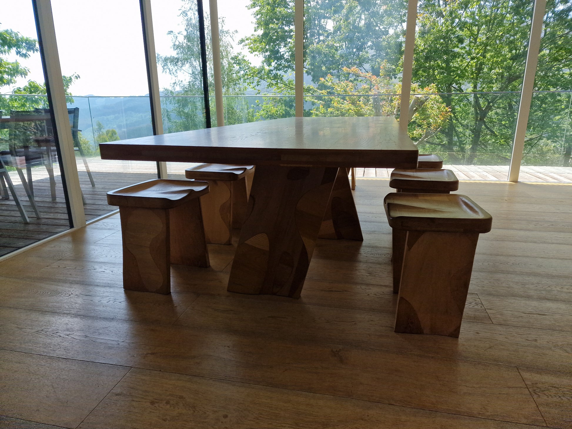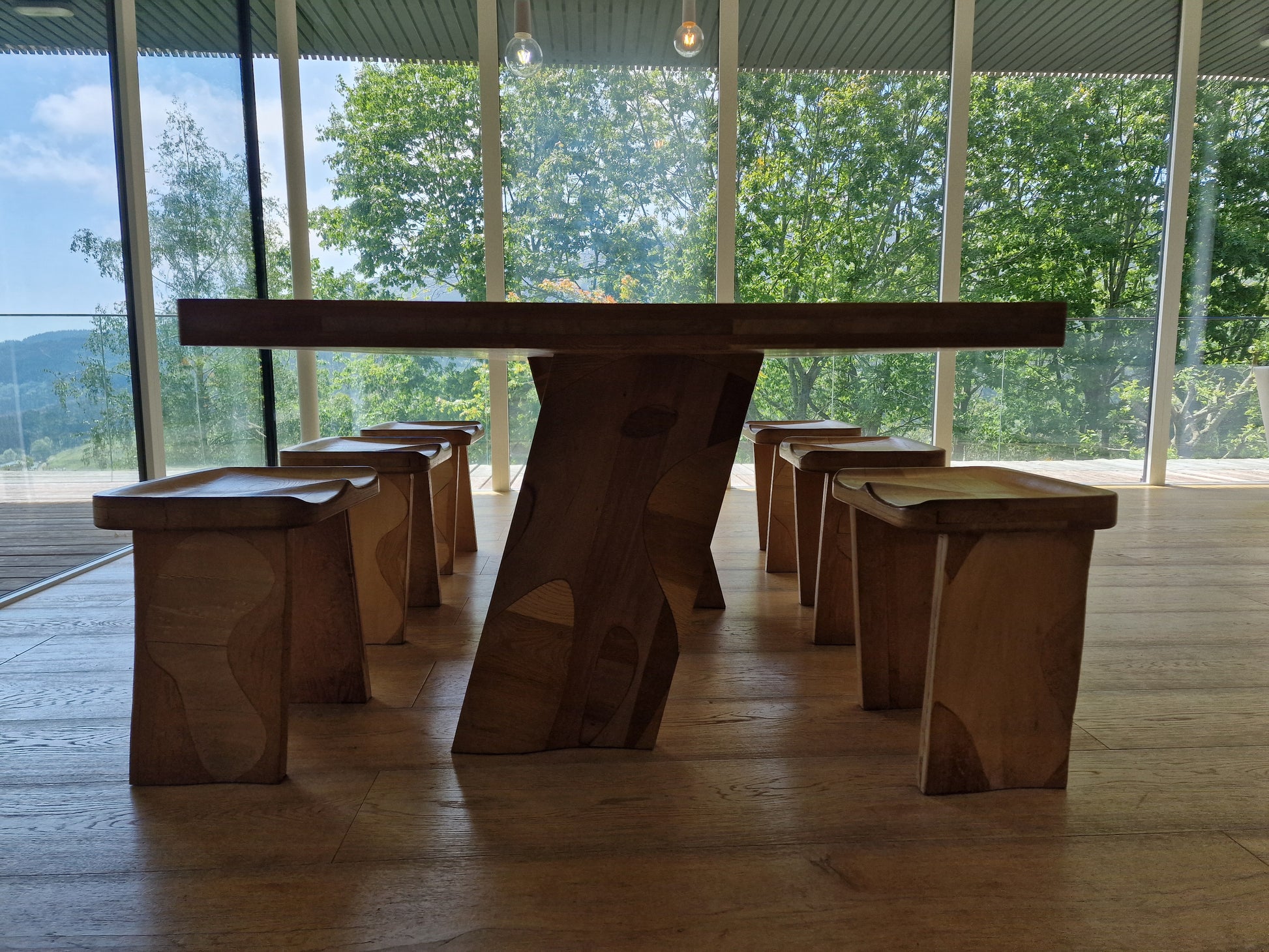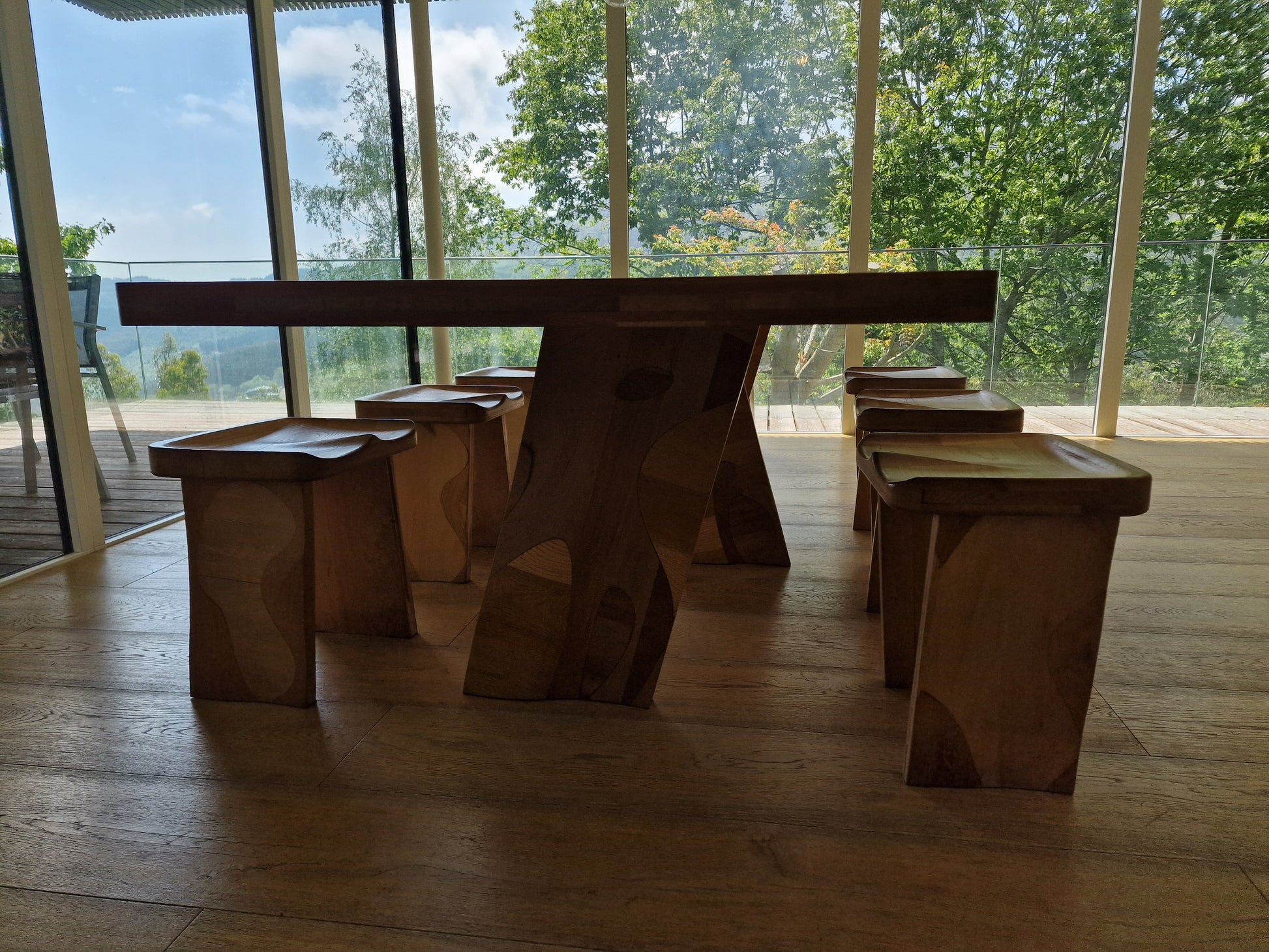 Oreka es una mesa de diseño innovador, fabricada con CLT de múltiples especies de madera, lo que le confiere una belleza y robustez únicas. Su estructura central inclinada crea una ilusión de inestabilidad, pero en realidad mantiene un equilibrio perfecto, demostrando la armonía entre forma y función.